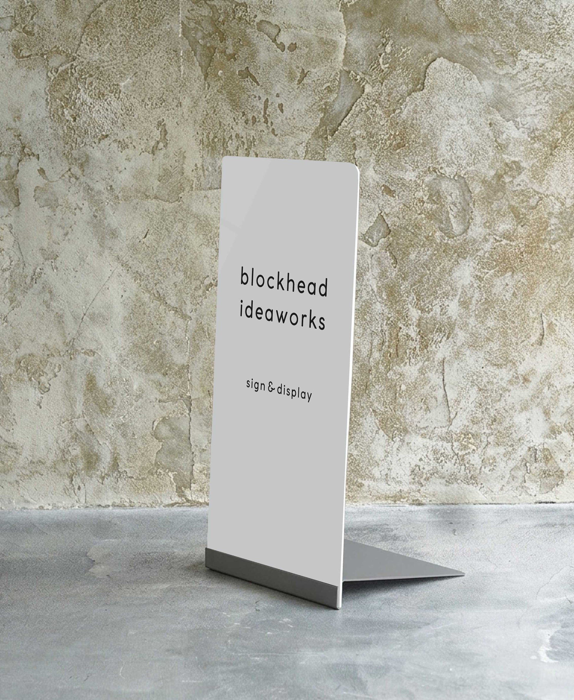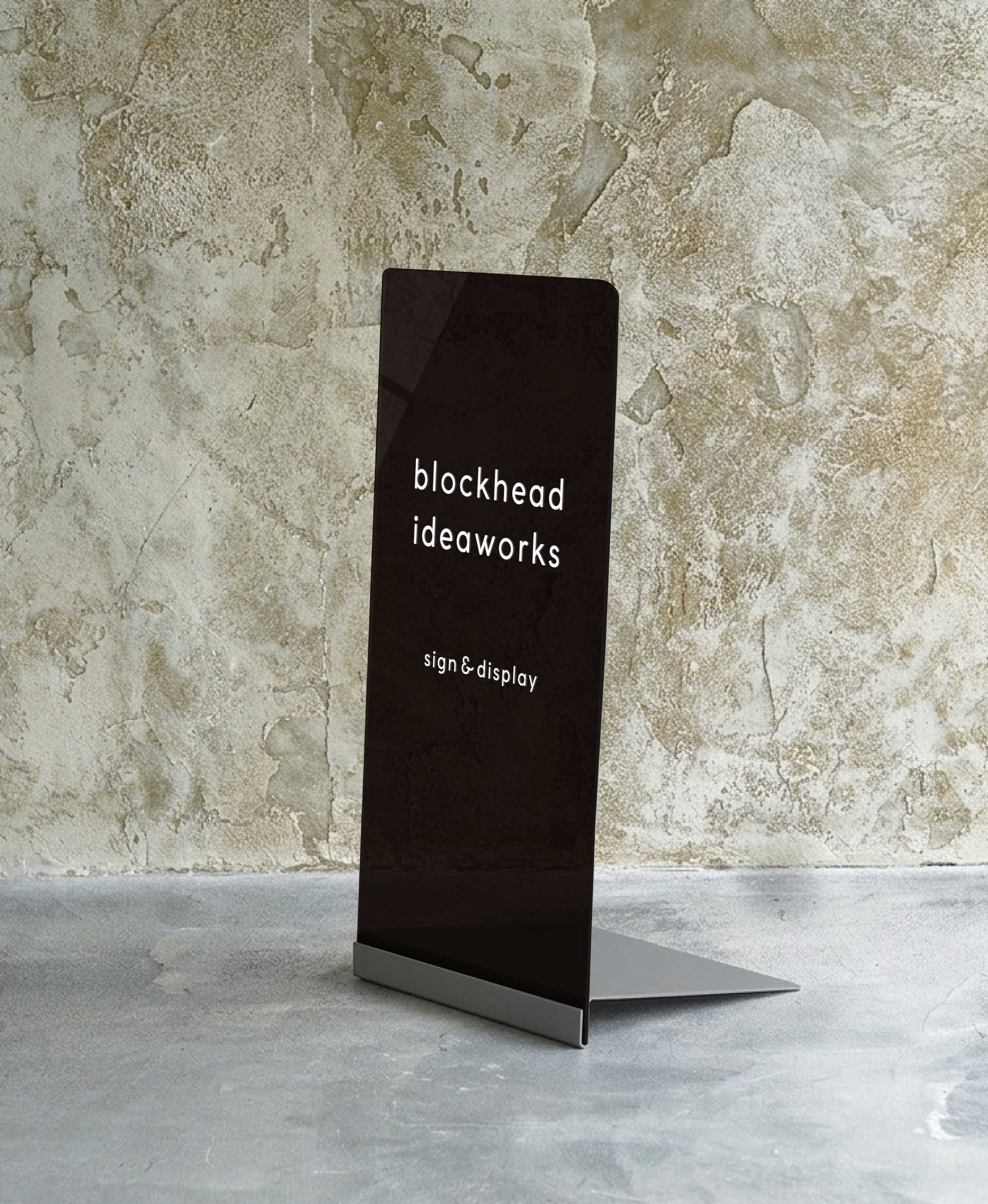 3mmのアクリルを差し込んで使用するスタンドサインが登場。スチールの台座にアクリルを差し込むだけの超簡単な設置方法。アクリルカラーは14色から、台座はホワイトとブラックに加え、新たにチャコールグレーが新登場。持ち運びにも便利なスタンドサインです。