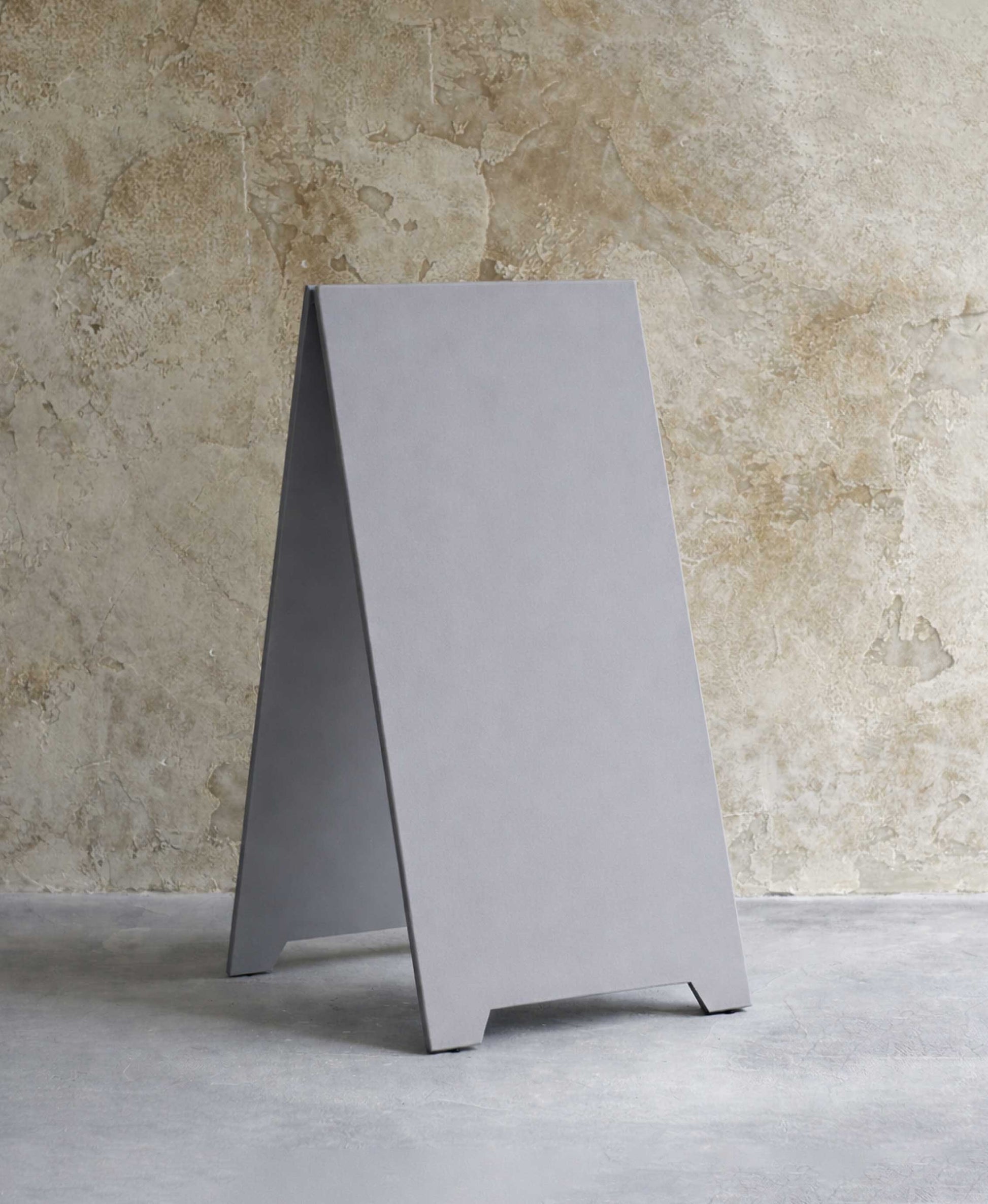 スチール製のA型スタンド看板です。ベーシックなA型タイプで、程よいボリュームと重量で、屋外にも対応した万能なスタンドサイン。スチール製なので板面にマグネットを取り付けることも可能。コンパクトに折りたたむことが出来るので、使用しない時は片付けておいたり、出店の時の持ち運びにも便利です。カラーはホワイトとブラックに新色のチャコールグレーの3色展開です。
